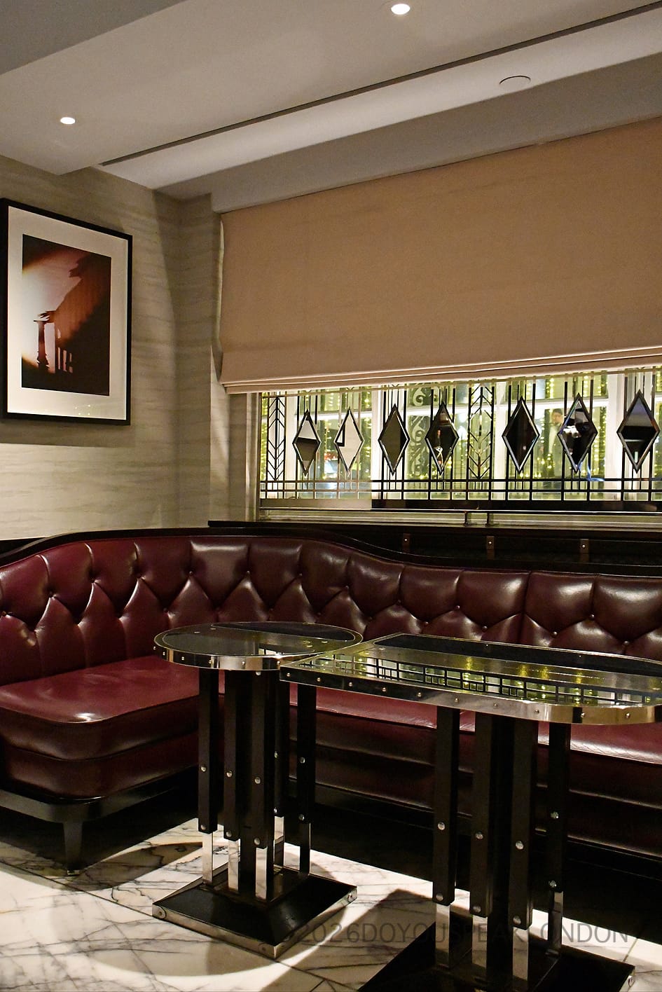 Inside, art‑deco marble floors and leather banquettes surround a menu of classic and heritage‑inspired cocktails and whimsical signature creations.