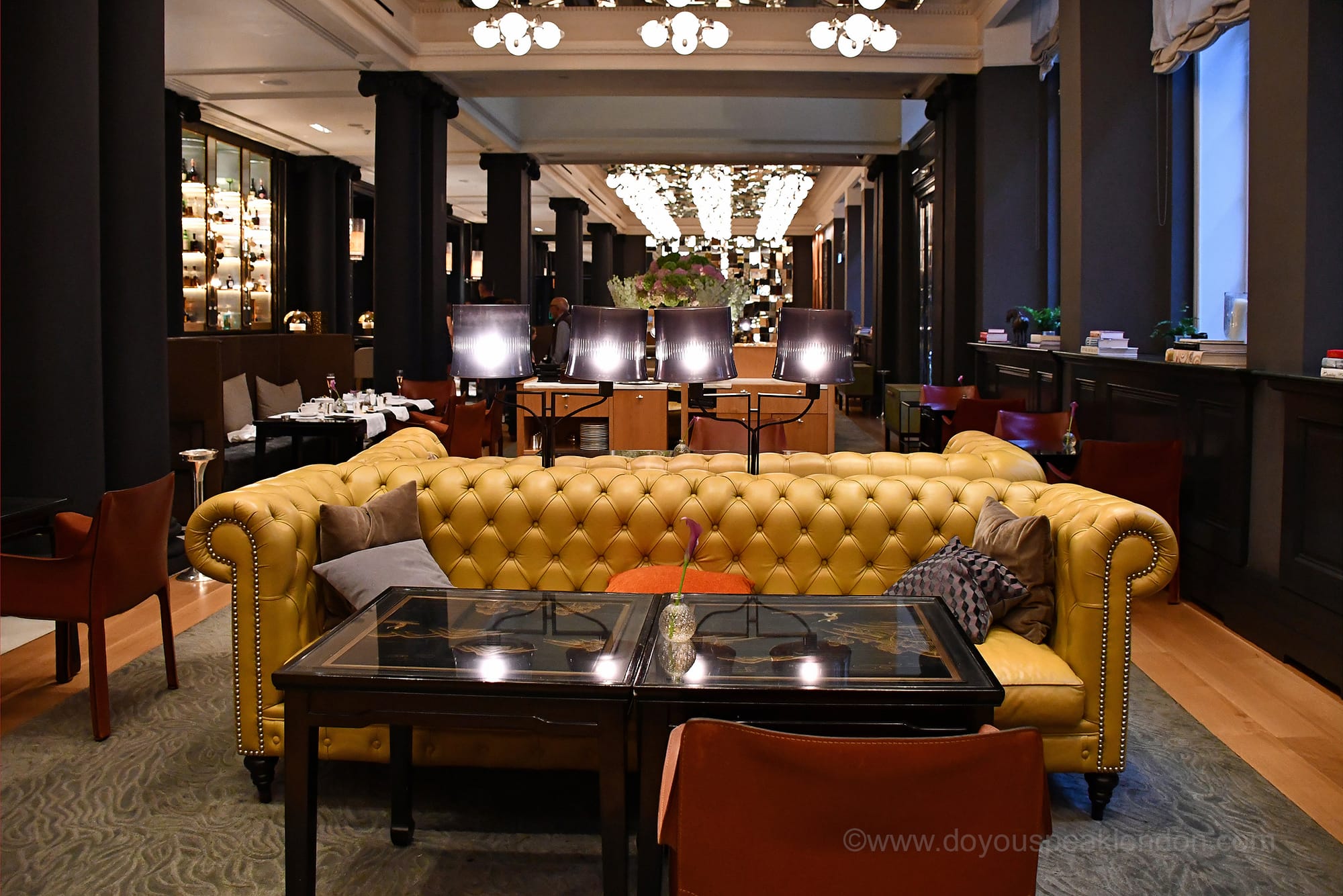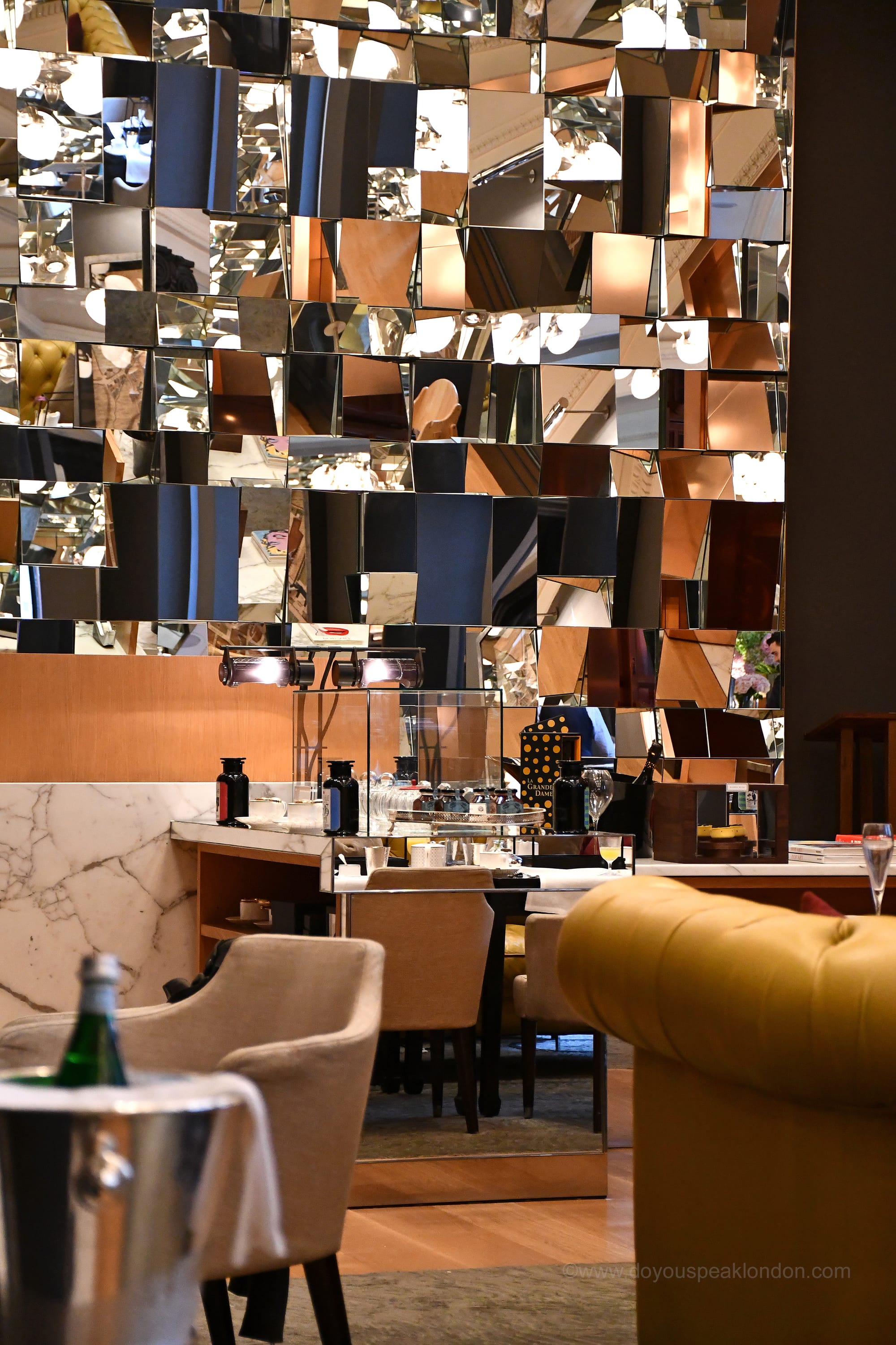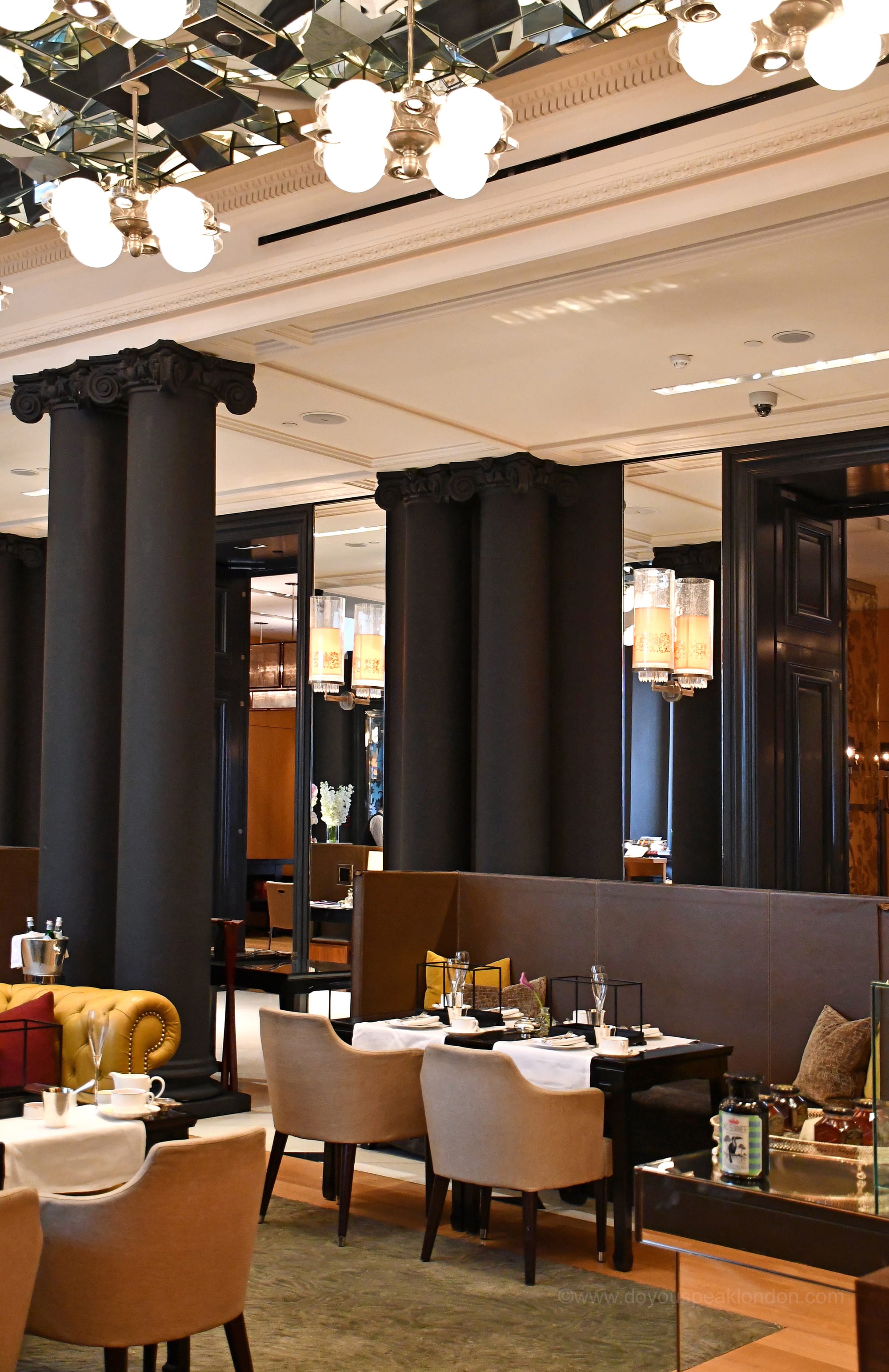I had booked a table for five in the Mirror Room, where the afternoon tea is served. We were all impressed by the stylish décor: mirrored walls, high ceilings with a contemporary chandelier, and, I must add, the incredibly comfy sofas!
