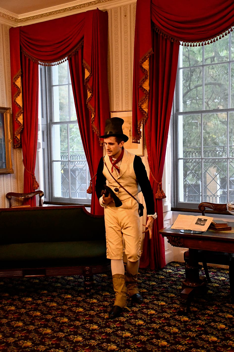 When we visited, actors roamed freely through the rooms, performing short scenes, interacting with visitors, and embodying characters from Dickens’s novels.