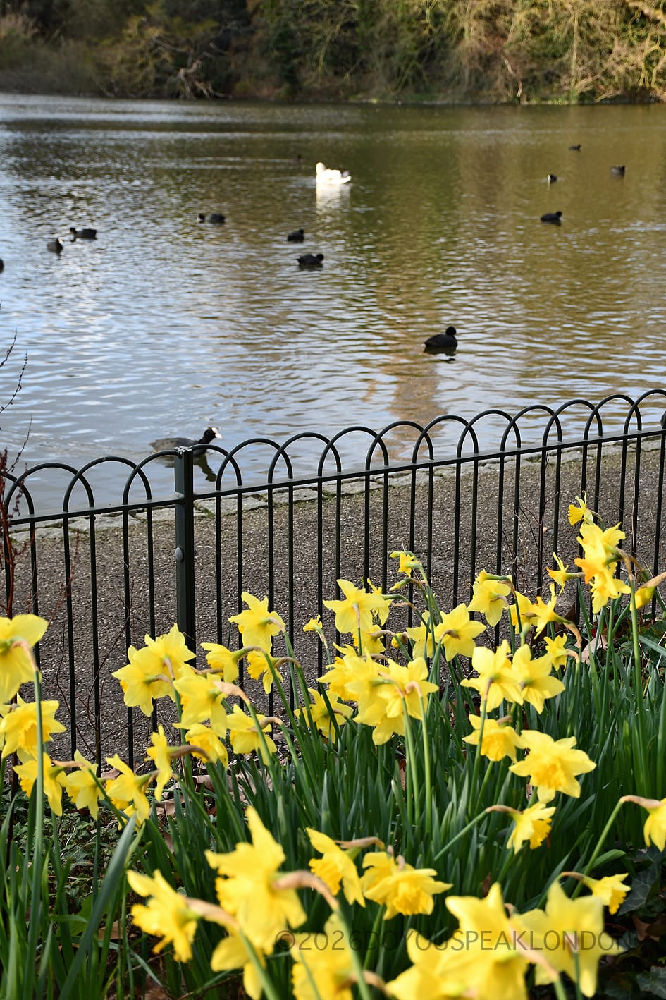 Daffodils are spread across the park, particularly around the Inner Circle and near Queen Mary’s Gardens. You’ll also find lovely patches near the lake.