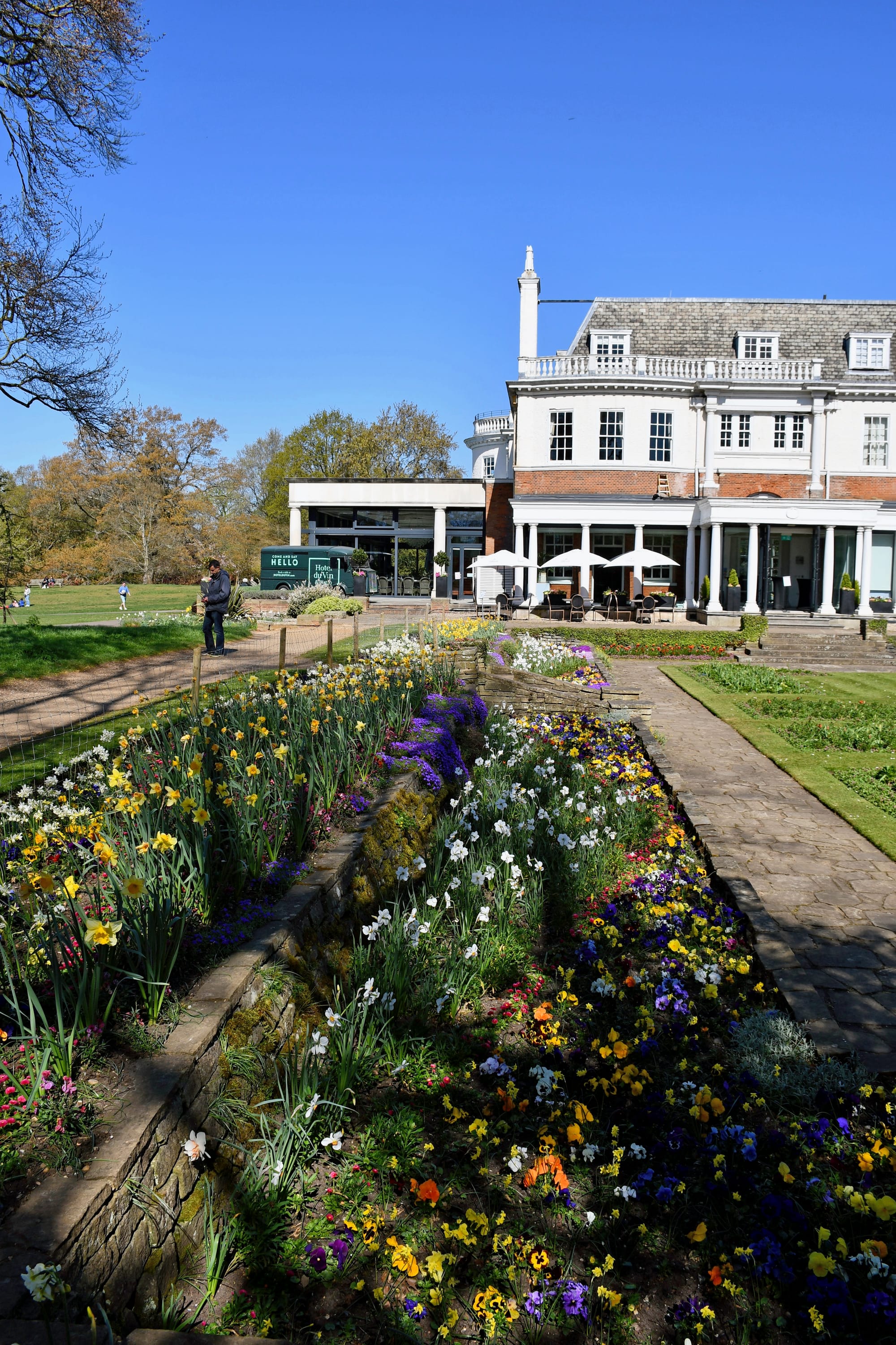Head towards the Observatory for some of the best views. Daffodils are usually scattered across the slopes and open lawns. A great mix of flowers and skyline.