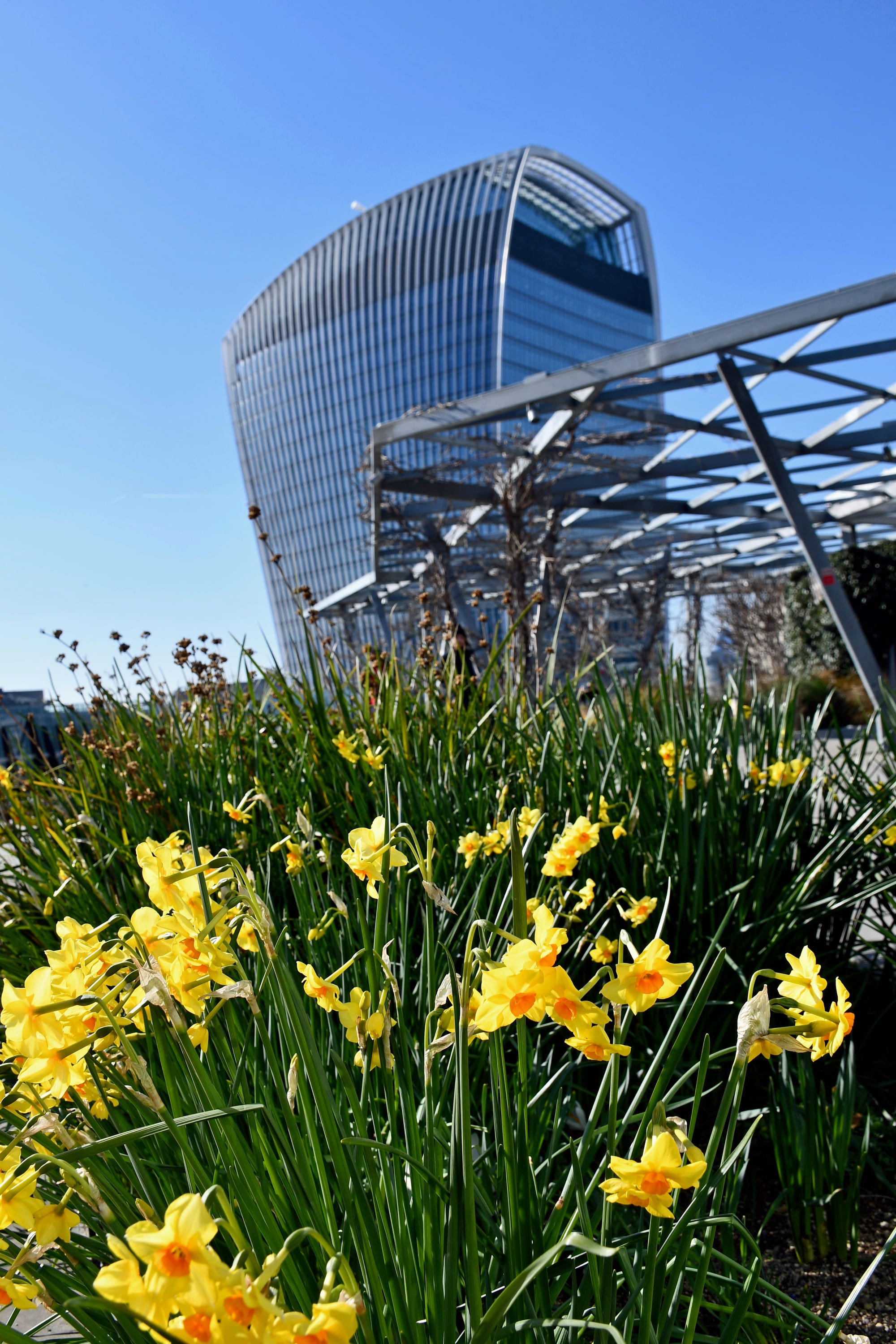 This rooftop garden in the City offers great views over London. Seasonal flowers sometimes include daffodils in early spring. Even without them, it’s worth the visit (read the full review here).