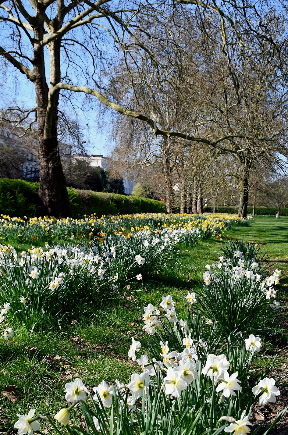 Just next to St James’s Park, Green Park is full of daffodils along the wide paths and open lawns.