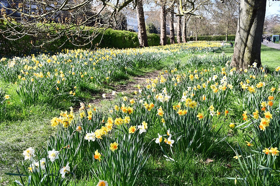 Among all spring flowers, daffodils are the first to appear. Their season usually runs from early March to mid-April, depending on the weather. During these few weeks, you will spot them in many parks, gardens and even along quiet streets across London.