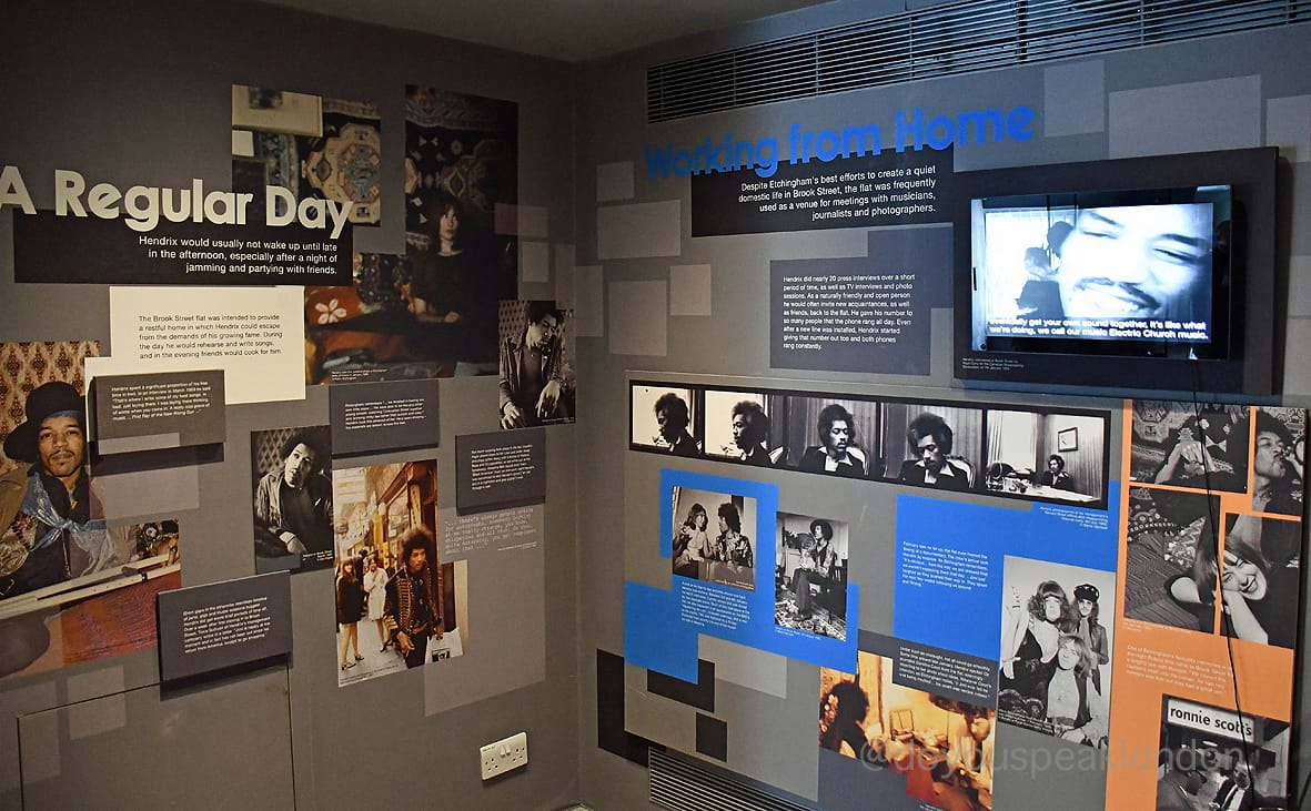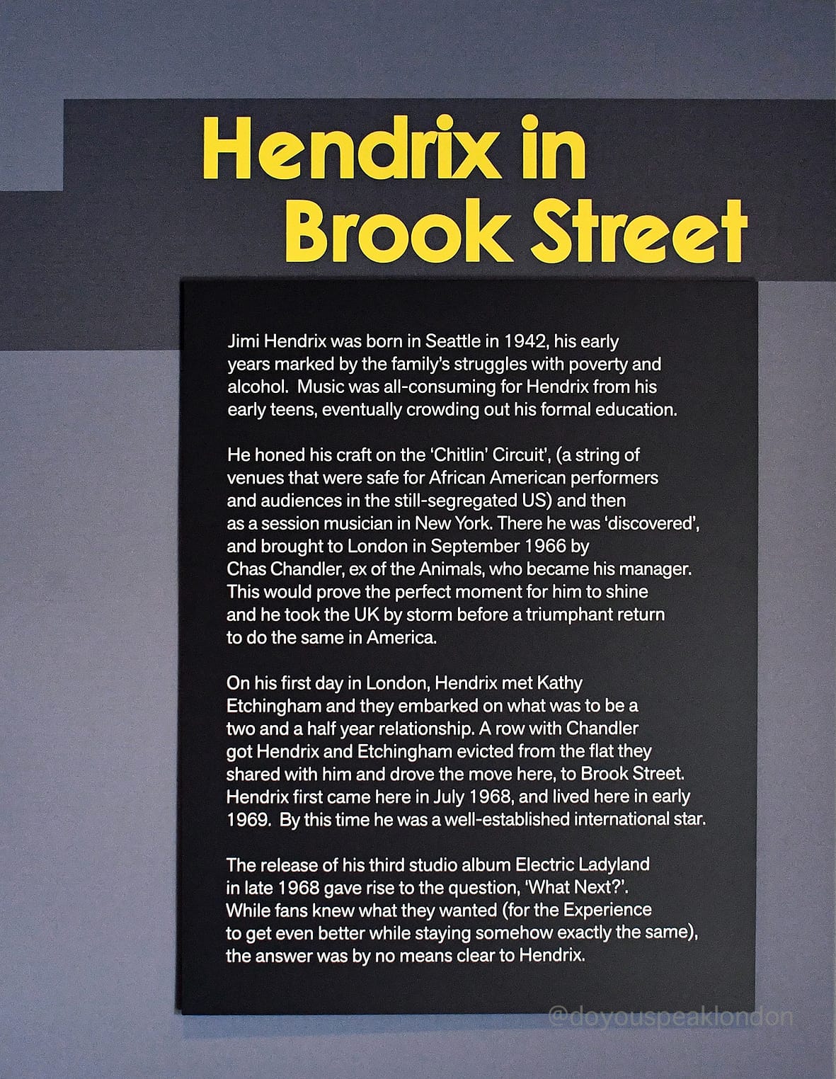 Next door, at 23 Brook Street, you step into a completely different world: the colourful, bohemian flat that Jimi Hendrix shared with his girlfriend, Kathy Etchingham, in 1968–69.