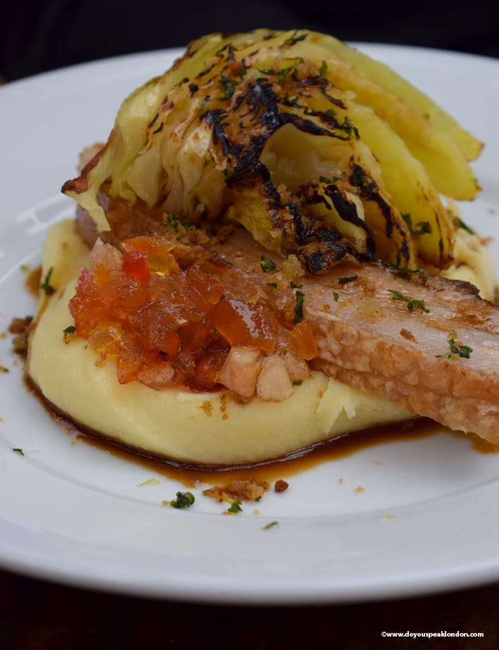 - Paddock farm pork with grilled king cabbage & Yukon gold potatoes, rich, comforting, and beautifully balanced