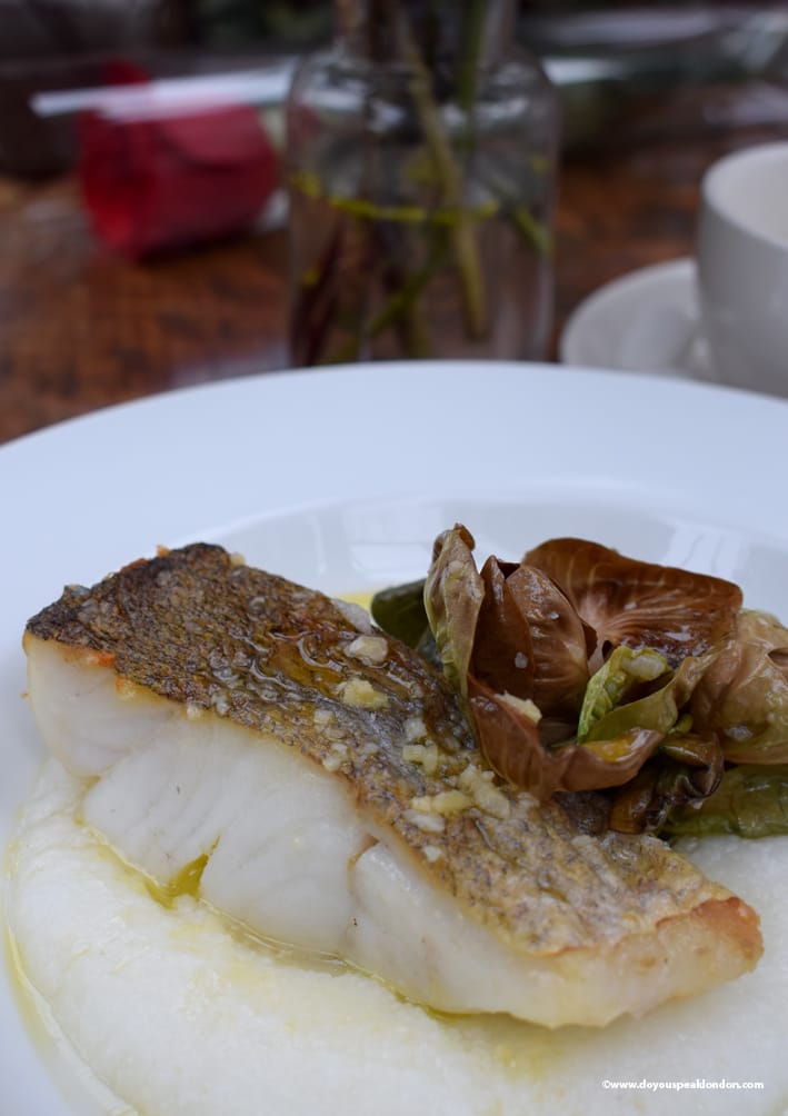 - Fillet of pollock with white polenta, delicate, light, and full of flavour