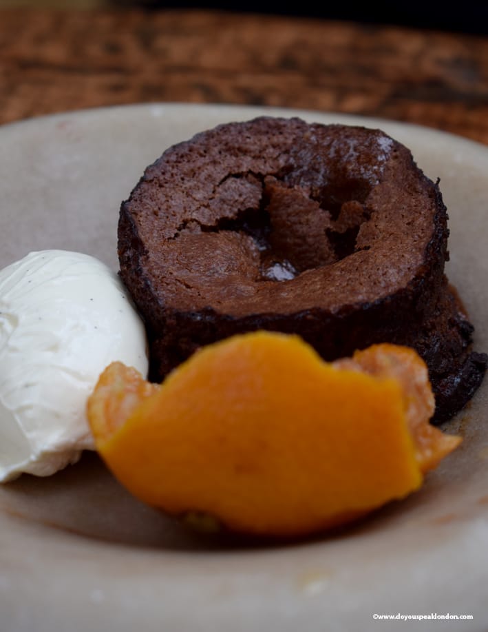 Warm flourless original bean chocolate cake with orange cake & mascarpone