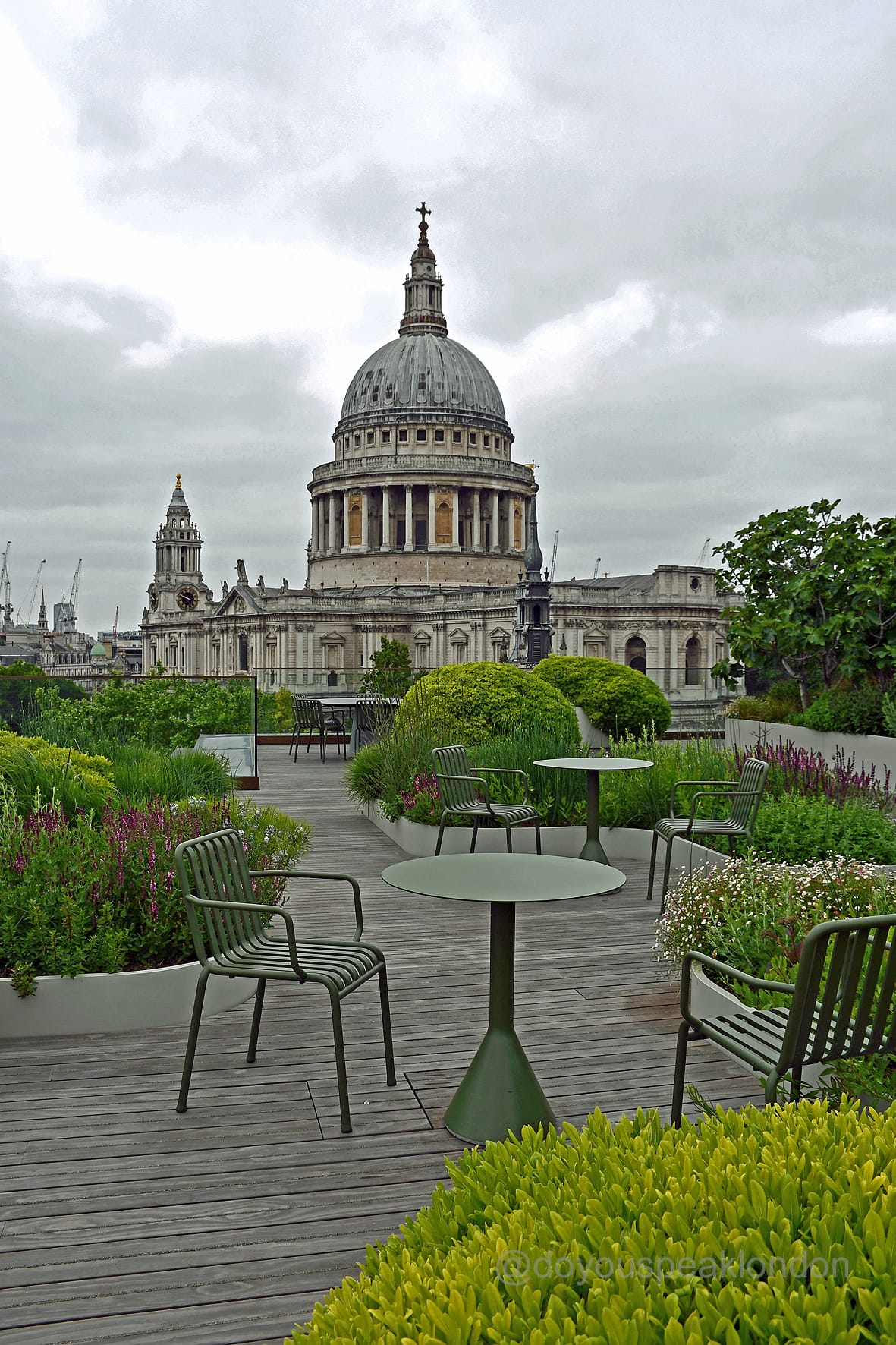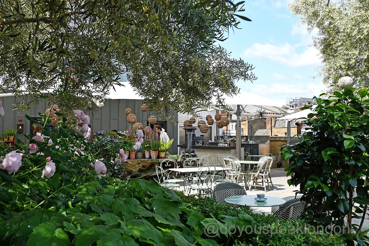 It’s the perfect spot to relax, soak in the sun, and enjoy a drink while surrounded by greenery, all above the bustling streets of London.
