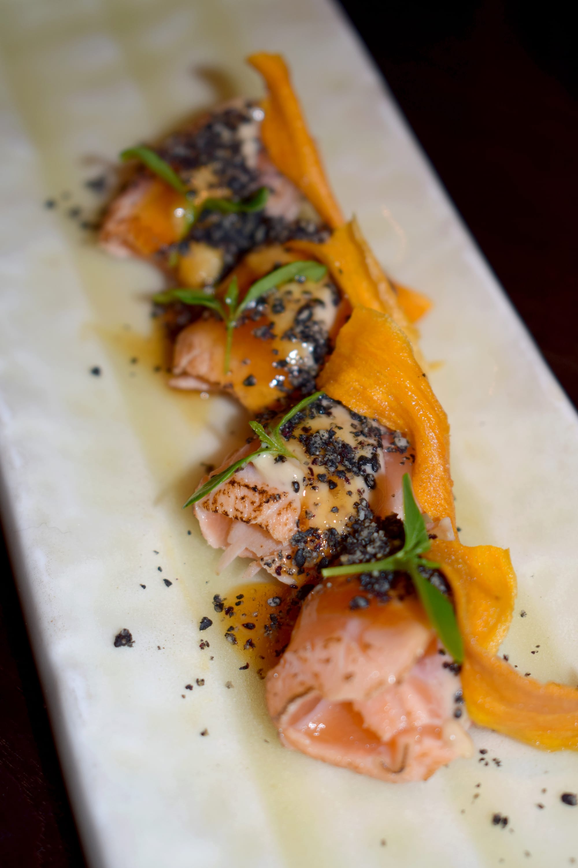 Tanks of Shochu, the traditional Japanese spirit, line the entrance walls, paying homage to the lounge’s namesake. The attentive staff guided us through the menu, and we couldn’t resist indulging in the tasting menu.