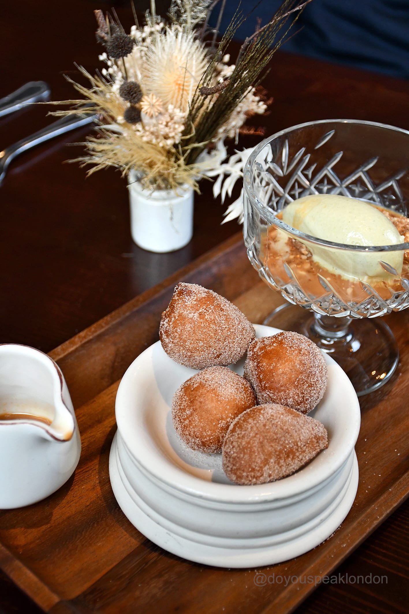 At this point, we were feeling full, so we shared a dessert: fig leaf ice cream with cinnamon doughnuts and caramelised goat’s milk.