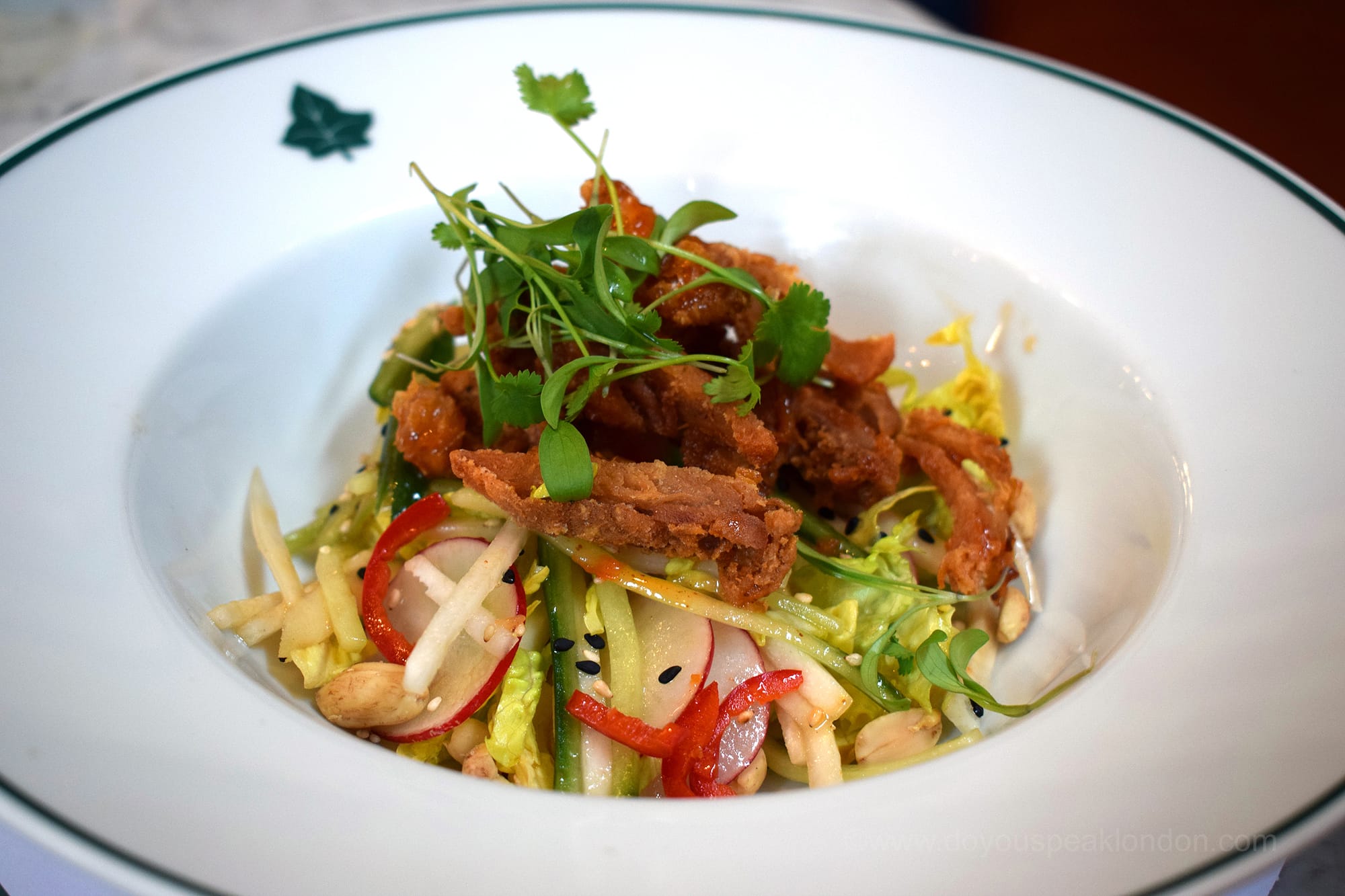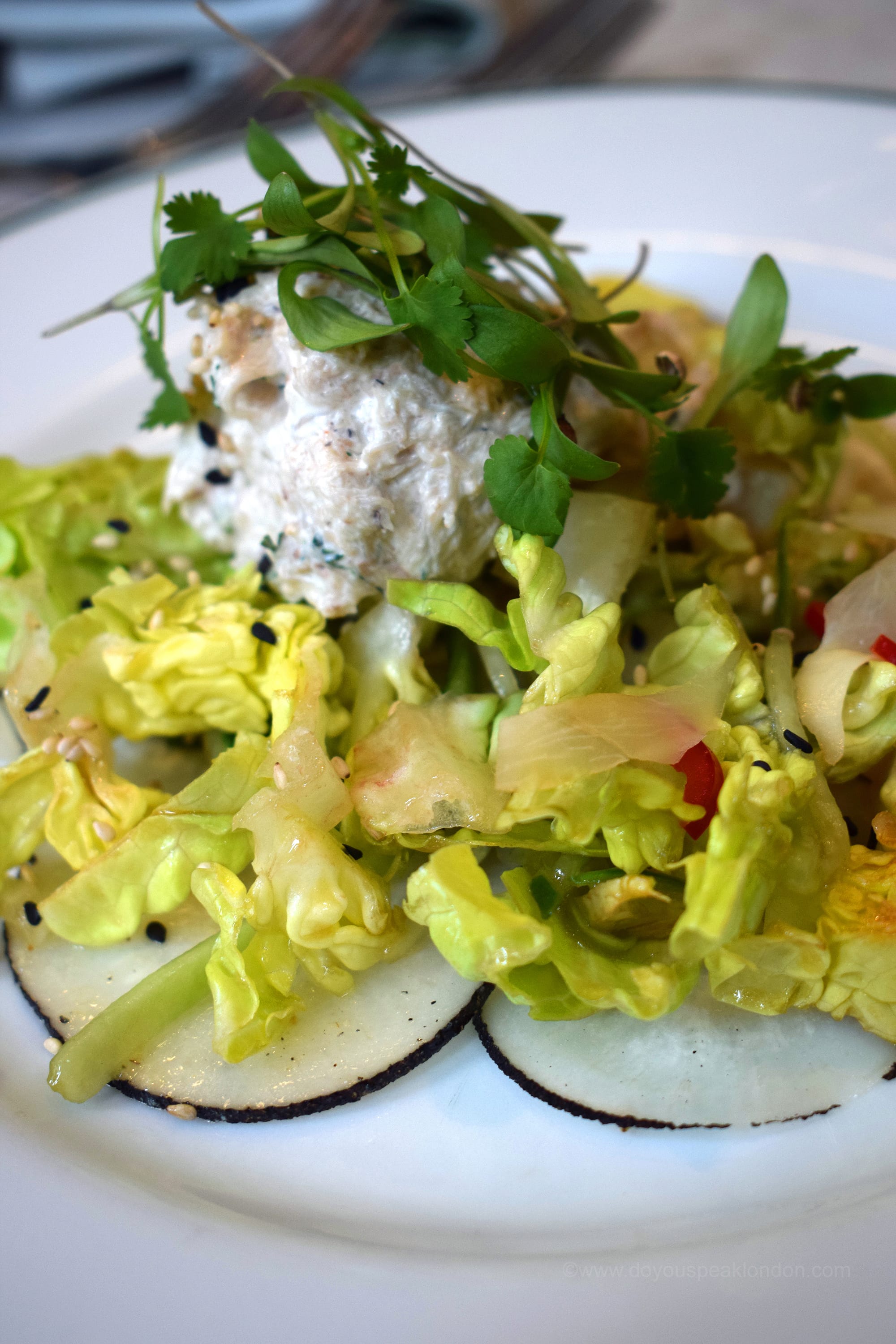 We chose a starter from the all-day menu: the “bang bang chicken” was just the perfect option as we really appreciated the combination of tasty chicken with the peanut dressing spiced with some chili, and the crispy vegetables.