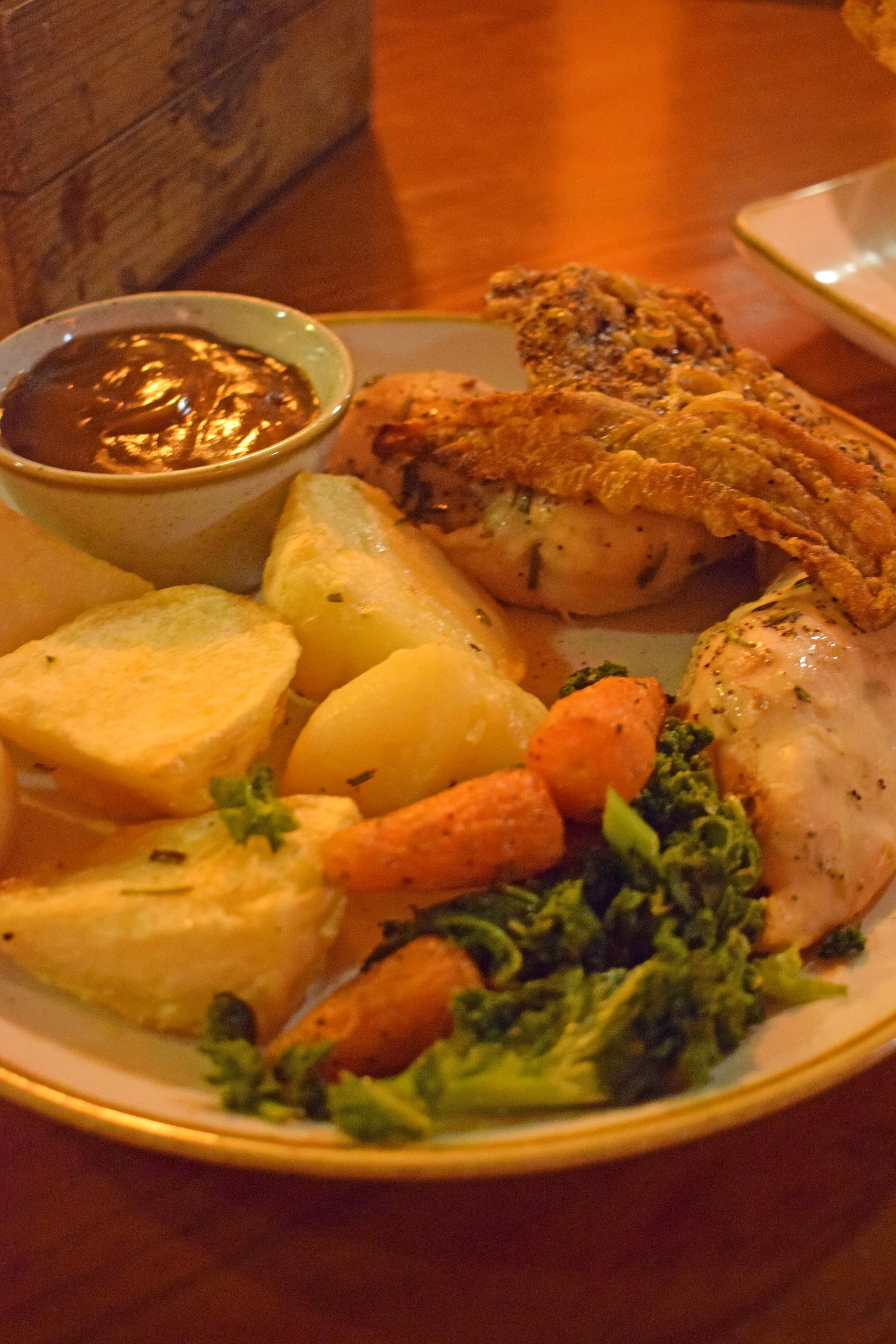 Lunch at Waxy’s offers traditional dishes such as burgers and roast chicken, paired perfectly with a local beer.